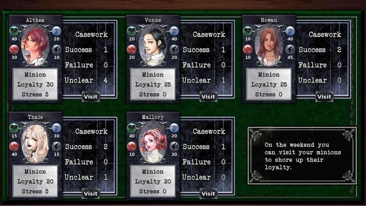 Вам надо будет распределять участников совета по заданиям, чтобы решать конфликты, расследовать происшествия и поддерживать порядок. Вы будете отправлять персонажей на проверки, собирать информацию и следить за развитием ситуаций. Ошибки в распределении задач могут привести к ухудшению обстановки.