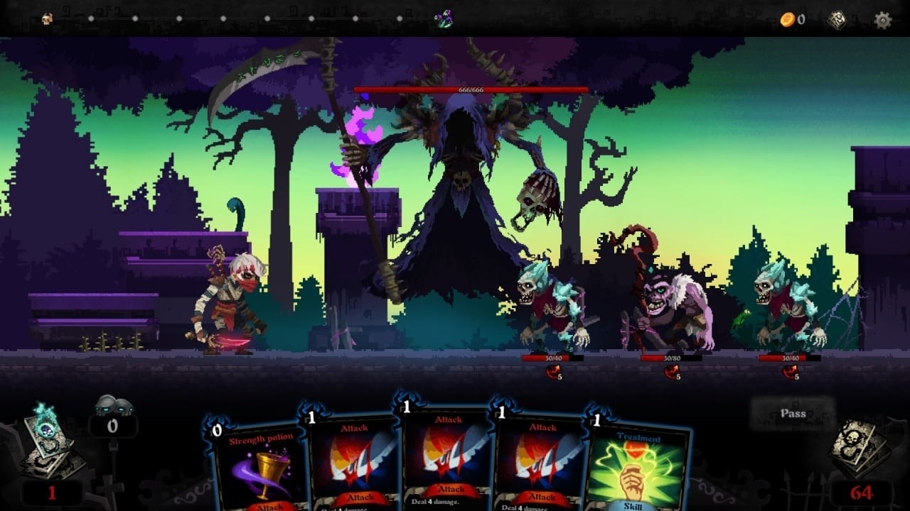 Вам надо будет передвигаться по карте, выбирать путь и заходить в сражения или события. Вы будете разыгрывать карты, атаковать противников и одновременно следить за размером колоды, так как её уменьшение приводит к поражению. Любое неверное решение быстро сказывается на результате.